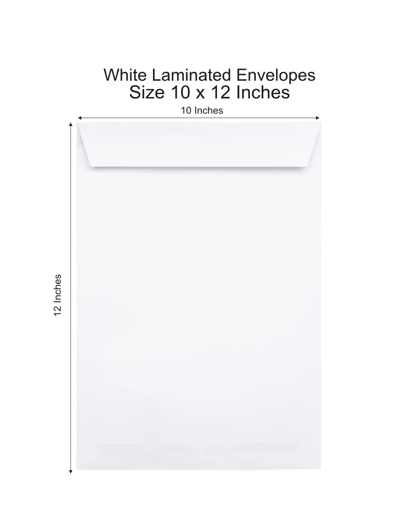 10 x 12 White Laminated Envelopes 100 Gsm. | For A4/Letter Size Magazine, Catalog, Documents Office & Multipurpose Envelopes | Vertical Portrait Envelopes